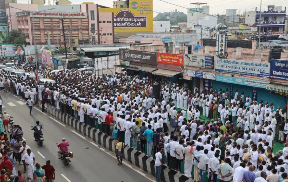 சேலத்தில் இருந்து கார் பயணமாக கோபிசெட்டிபாளையம், சத்யமங்கலம் வழியாக இன்று நீலகிரி மாவட்டம் சென்றார் பழனிசாமி. வழியில் கோபிசெட்டிபாளையத்தில் செங்கோட்டையனுக்கு பதிலாக புதிதாக நியமிக்கப்பட்ட ஈரோடு புறநகர் மேற்கு மாவட்ட பொறுப்பாளர் செல்வராஜ் தலைமையில் அதிமுகவினர் திரண்டு பழனிசாமியை வரவேற்றனர். செங்கோட்டையனின் கோட்டையில் தனக்கு கிடைத்த வரவேற்பினால் உற்சாமடைந்த பழனிசாமி, காரை விட்டு இறங்கி தொண்டர்களின் வரவேற்பினை பெற்றுக்கொண்டார். இதனால் சுமார் அரை மணி நேரம் வரவேற்பினை பெற்றுக்கொண்டு அதன் பின்னர் சத்தியமங்கலம் சென்றார்.